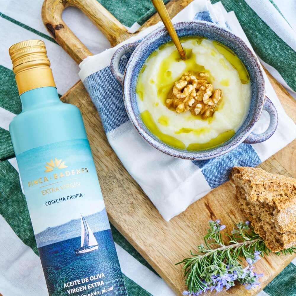 Este AOVE é produzido com azeitonas selecionadas em meados de outubro nas oliveiras da propriedade "Los Badenes" (Aires de Jaen), as melhores azeitonas de colheita precoce Picual, Frantoio e Arbequina com as quais obtemos este azeite único, com personalidade própria e cheio de nuances.