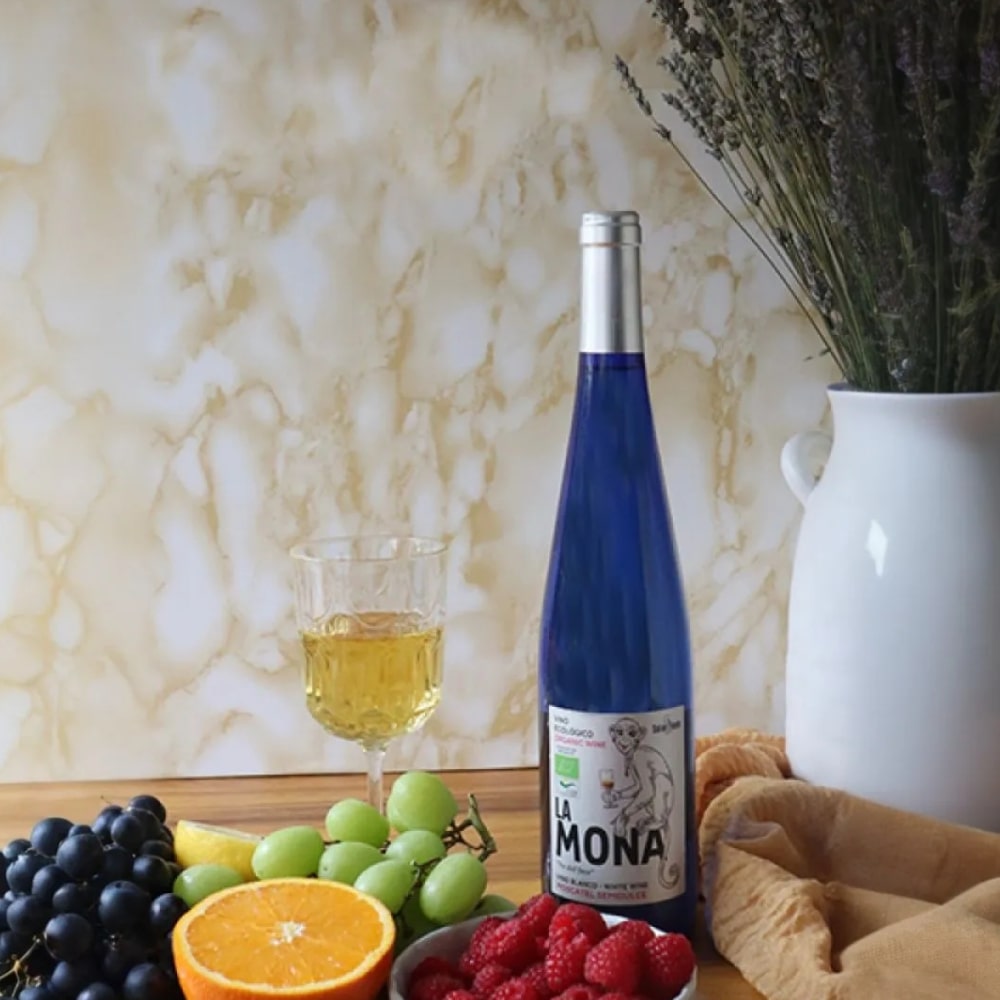 O La Mona Ecológico é um vinho branco orgânico elaborado com uvas Moscatel, caracterizado por sua autenticidade e respeito à natureza. Apresenta uma cor dourada com reflexos esverdeados, refletindo seu frescor e vitalidade. No nariz, destaca-se pelo aroma floral intenso e encantador. No paladar, é voluptuoso, leve e ao mesmo tempo concentrado, com uma textura delicada e final sensual.
